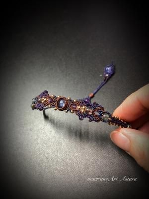 マクラメコードは煉瓦色、ネイビー、パープル、ボルドーを4色バランスをみながら配色致しました。