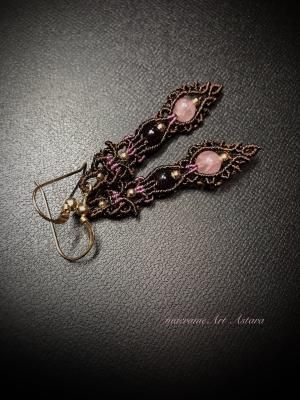 2周年記念セール品(10%)ローズクォーツ&ロードライトガーネット マクラメピアス